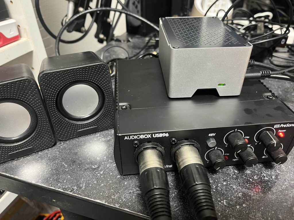 開発時の動作環境としては、Linux Mint22.2(Cinammon Edition)とRaspberry Pi 5で確認。Linux MintはLenovo M710q(Core i5-7500T、RAM 16GB)で動作を確認。音源の再生や生放送音声の送出はPresonus AUDIOBOX USB96とARTURIA MiniFuse2で確認しました。(写真はRaspberry Piで動作している様子)